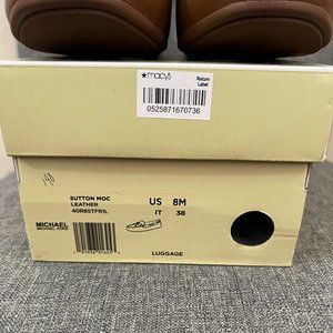 Michael by Michael Kors tan leather moccasins; size 8M; worn 1 time; box included