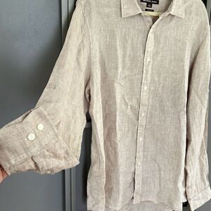 Michael Kors tan linen long sleeve men's button down shirt cruise wear size XL