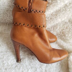Michael Kors tan scalloped leather ankle boots sz 8.5