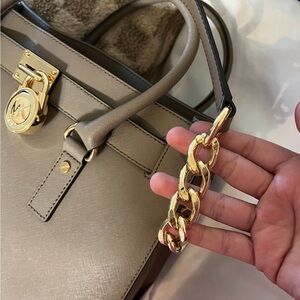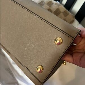 Color. The bottom gold parts for the bag to stand have some scratches but not a lot, the inside is nice and clean, does come with one strap only. Comes with dust bag !