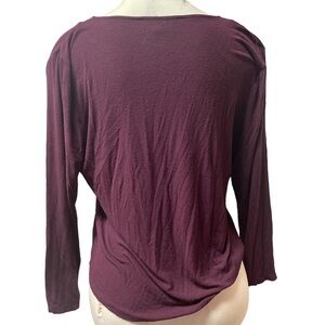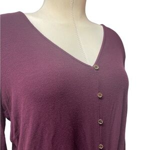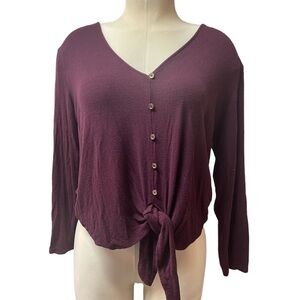 A pretty burgundy top with faux buttons. In a nice comfy knit with a flattering tie.