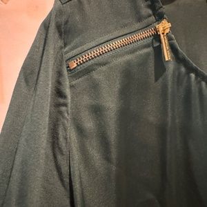Green Michael Kors top with zippers at shoulders. Cotton sleeves/satin body