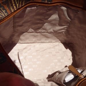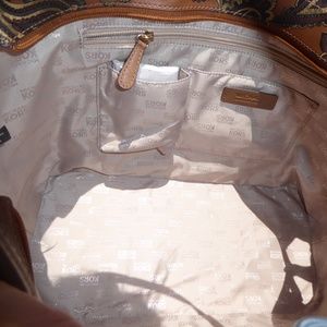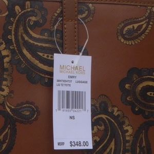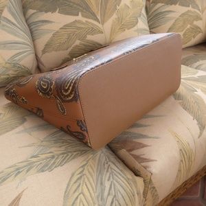 Beautiful shades of tan and brown make up the paisley print on this Large Michael Kors tote.