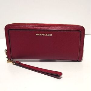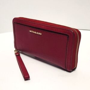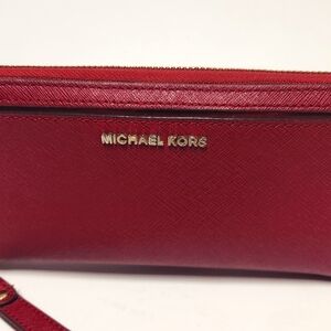 Michael Kors travel large Wristlet bag Burgundy color great used condition H 4" L 8.5" wide