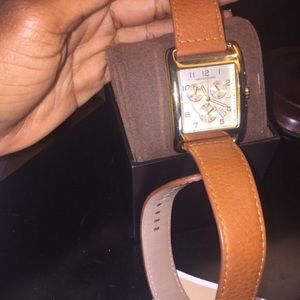 Gold, leather strapped watch. Worn once in red carpet for Halle Berry's charity organizations', Jennessee award gala