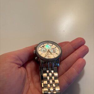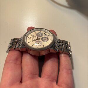 Selling a silver Michael Kors watch, in good condition, just needs a new battery. Otherwise, good condition, with some minor scuffs from typical wear. Priced to sell!