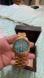 this beautiful watch is a stainless steel with a gold cone. It has a teal face to it. It is in a box representing charity, giving watch hunger stop one watch equals to 100 meals . It was given to my daughter. It has been made smaller, but included are the extra removed the links. In excellent condition, worn, maybe twice. Also included is a little booklet of how to work or read the dials, etc..