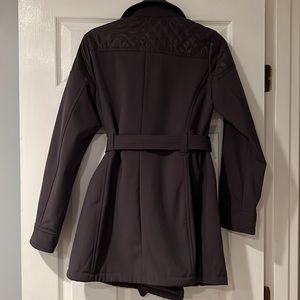 Lightly used, no signs of wear/tear. Dark grey/olive greenish color. Gold zippers.