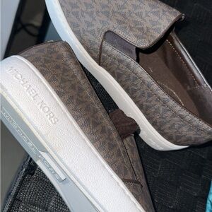 Stylish brown loafers with signature pattern. Easy slip-on design. Perfect for casual wear.