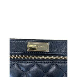 The Michael Kors quilted leather wristlet clutch exudes sophistication with its elegant design and gold-tone hardware. Ideal for evenings or formal events, this clutch offers a sleek and stylish way to carry essentials. The wristlet strap adds convenience. In very good condition in and out with no defects noted. SKU 9225