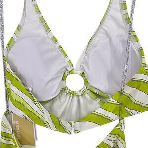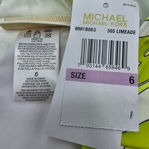 Michael Michael Kors MMK womans size 6 Printed O ring cutout one piece swimsuit Limeade full bottom V-neck back clasp closure tie back halter straps O ring front with cutout sides and back fully lined built in removable cups swimwear NEW with tags