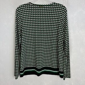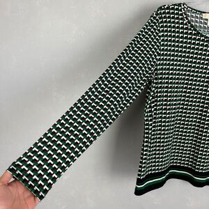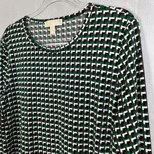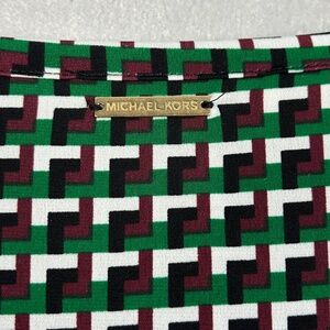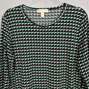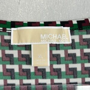 Michael Kors women size XL long sleeve top brown green geometric stretch jersey