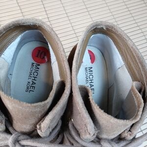 Michael Kors women's sz 10M. 4" wedge heel ankle boots. Brown leather lace. Great condition. 211pm