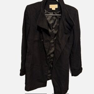 This is a gently used black 80% wool 20% nylon Michael Kors peacoat. Ladies size 10. Double breasted buttons, fully lined, front hand pockets, button cuffs and back walking slit. Very good condition. #michaelkorscoat #ladiesmediumcoat #michaelkorsjacket #ladiespeacoat