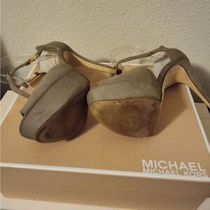 Step out in style with these elegant Michael Kors peep-toe heels. Featuring a chic mushroom color, these shoes match practically everything.