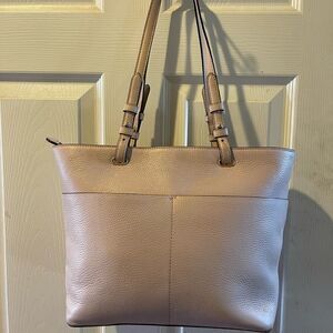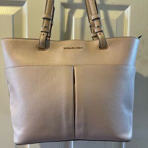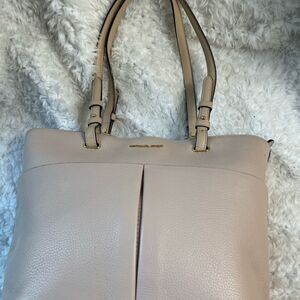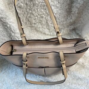 Michael Kors Bedford Pebble leather light pink Medium tote Gold tone accents two front pockets top zipper the inside lining has a side zipper four side pockets.pre owned in good used condition some ink stains on the lining see all pictures any questions please message.F1