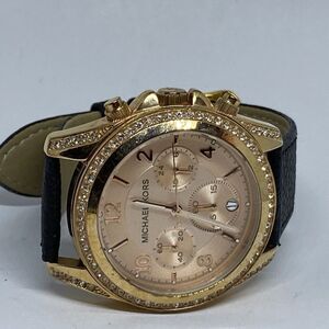 Michael Kors Blair MK5263 Women's Black Leather Analog Dial Quartz Watch EY188