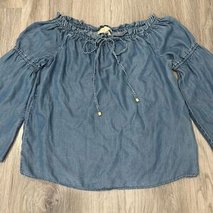 Michael Kors Blue Denim Off The Shoulder Blouse