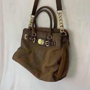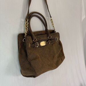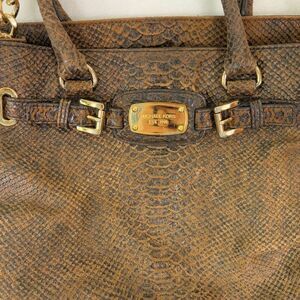 Excellent pre-owned condition Michael Kors Brown Snakeskin Leather Large Satchel Purse