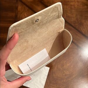 Chic sunglasses featuring a brown tortoise frame. Includes a cream case and cleaning cloth.