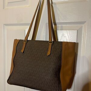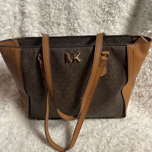 Michael Kors Brown and Tan Tote Bag with Structured Design