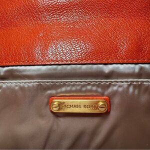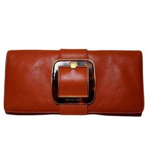 Michael Kors Clutch. Worn a handful of times - great condition. Orange leather with gold hardware and tortoise buckle.