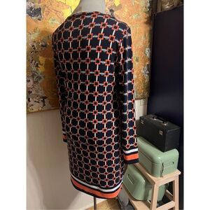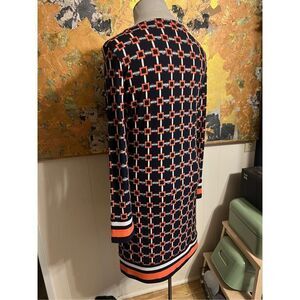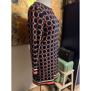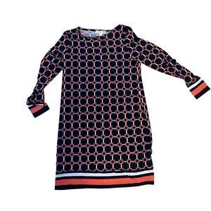 From designer Michael Kors comes this beautiful window pane check dress with long sleeves! This is perfect for work in a slinky stretch knit never needs ironing! This has a scoop neck and is super comfortable! Wear this to work and then on out to dinner afterwards. Very good preowned condition with no flaws noted. machine washable.