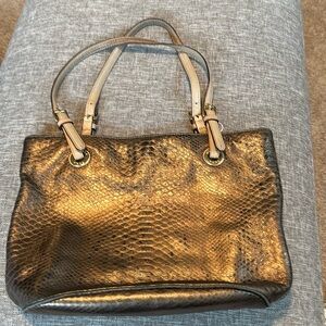 Michael Kors-Gold “Raven” Embossed Leather Shoulder Bag,