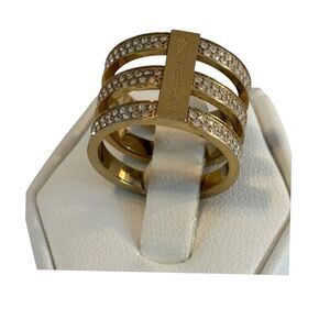 Michael Kors Gold Tone Tri-Stack Fashion Ring w/ Clear Pave Crystals.