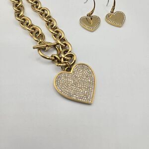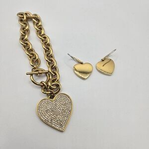 Michael Kors Gold-Tone Heart Charm Bracelet Earrings Rhinestone Accents