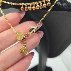 Michael Kors Gold-Tone Rose Gold-Tone Double Strand Necklace Hexagonal Charm Ac