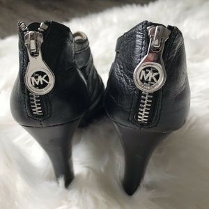 Michael Kors ~Black Leather Ankle Booties~ Sliver Zipper
