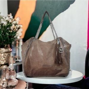 Michael Kors Handbag Women L Chelsea Metallic Tan Whipstitch Tassel Shoulder Bag