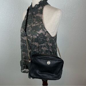 Michael Kors MK Pebbled Leather Fulton Style Black with Gold Chain Hardware Crossbody