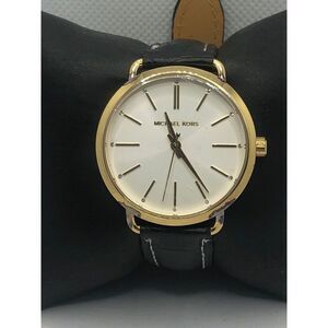 Michael Kors MK2737 Women's Black Leather Analog White Dial Quartz Watch OP421