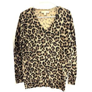 Michael Kors Medium Cotton Blend V-neck Leopard Print Sweater SZ M GUC