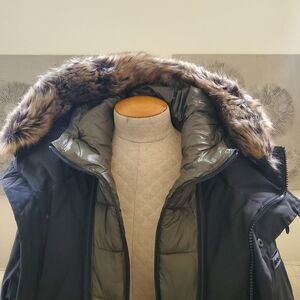 Michael Kors Men's Hooded Bib Short Snorkel Coat size XL in Olive/Black w/ Faux-Fur-Trim