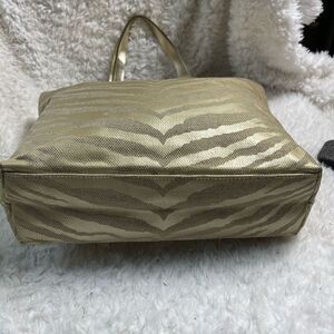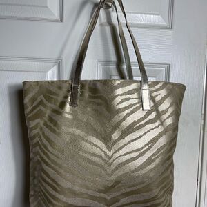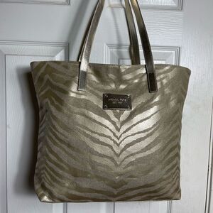 Michael Kors Metallic gold zebra print large tote gold tone hardwares and straps.open top no interior pocket.pre owned in good used condition clean sign of wear on one strap see all pictures any questions please message.A1