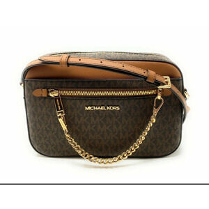 Michael Kors-NWT-Brown signature print crossbody gold chain zipper top handbag
