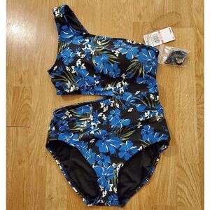 MICHAEL Michael Kors One-Shoulder Logo Cut-Out One-Piece Swimsuit sz 10.