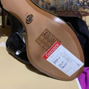 Michael Kors Paris Sandal Black Patent Heel Open Toe Sequin Bow Women sz 6 Mk