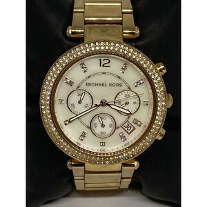 Michael Kors Parker MK5491 Women's Gold Stainless Steel Analog Dial Watch with stylish look. A classy watch is all you need to make any attire look more attractive. This Michael Kors timeless creation looks appealing. These genuine timepieces are definitely watches to keep your eyes on, this very eye-catching and modern watch is the perfect accessory option for every day wear.