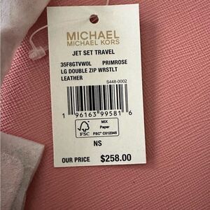 Michael Kors Pink Primrose Jersey Travel Large Double Zip Wristlet Leather