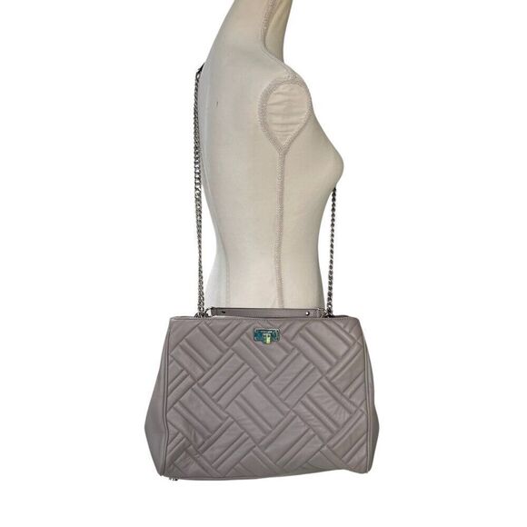 Michael Kors Quilted Leather Peyton Shoulder Bag Tote With Chain Strap Gray