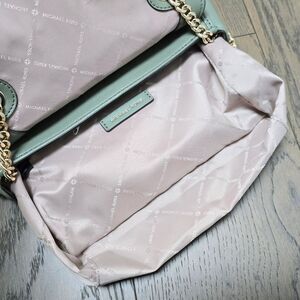 Michael Kors Regina Medium Woven Suede Convertible Shoulder Bag in Army Green