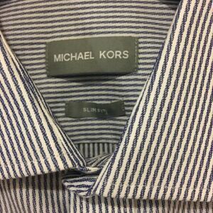 Michael Kors Slim Fit Striped Blue Shirt Size 15.5