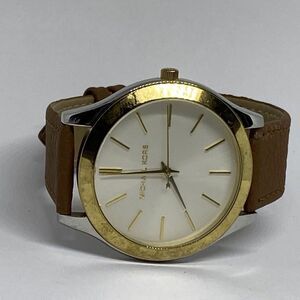 Michael Kors Slim Runway MK-3198 Women's Brown Leather Analog Dial Watch EY110