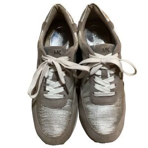 Michael Kors Stanton Trainer Metallic Suede and Embossed Leather Lace Up Sneakers US Women’s Size 6 1/2