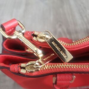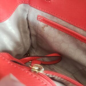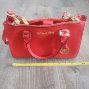 Michael Kors Sutton Mandarin Orange Small Leather Handbag Purse Bag. Crossbody strap included. No rips or tears. No issues on exterior leather. Interior has a couple small stains. Original MK bag charm included.