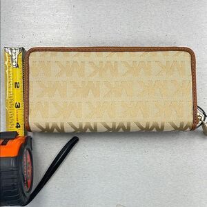 Michael Kors wallet with MK pattern. Features gold-tone logo plate.